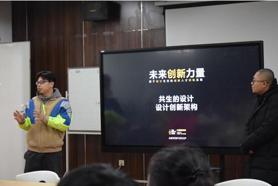 “共生的设计”设计创新架构讲座由工业设计系杨艺老师主持,浪尖设计集团有限公司常务副总兼创意总监、深圳市浪尖开物科技有限公司总经理姜臻炜先生主讲,姜臻炜先生从事一线的工业设计及创新工作,曾带领团队获得多项G-mark,IF,红点,红星等国内外设计大奖,用新型创新思维帮助企业从市场定位,设计创新到生产实现提供解决方案且落地。