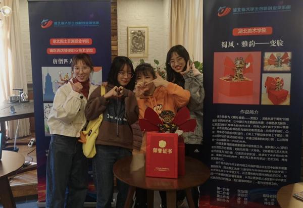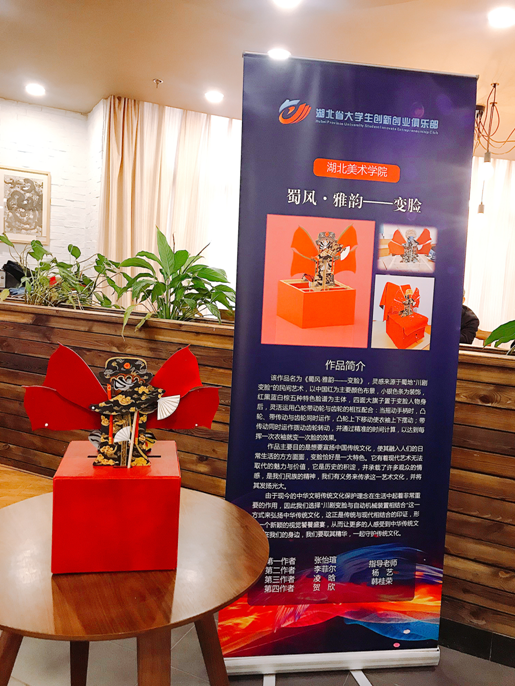 (通讯员:秘书部)为贯彻落实《国务院关于推动创新创业高质量发展打造“双创”升级版的意见》,更好地营造我省高校大众创业万众创新氛围,激发大学生创新潜能和创造活力,培育和催生经济社会发展新动力,湖北省大学生创新创业俱乐部会同湖北省高校学校毕业生就业指导服务中心于2019年9月-11月继续组织“湖北省大学生文化创意作品评选”活动。经层层筛选,通过选手答辩,专家评分,最终我校工业设计系教师杨艺、韩桂荣指导的17级产品设计专业张怡瑄、李菲尔、凌晗、贺欣设计创意作品《蜀风·韵雅——变脸》在“2019年湖北省大学生文化创意作品评选”活动中荣获二等奖。