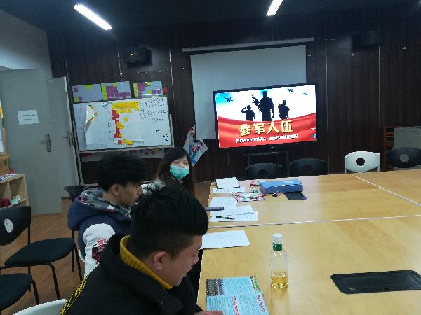 (通讯员 秘书部)根据国防部征兵办公室下发的《关于做好2018年征兵准备工作的通知》,按照学校武装部的规定。2019年1月4日中午12:00在工业设计A6-210教室召开2019届毕业生征兵入伍宣讲答疑会,及时部署展开了大学生预征工作,确保在大学生离校前完成体格检查、政治考核和预定兵工作,本次会议由辅导员胡凌珺老师主持。