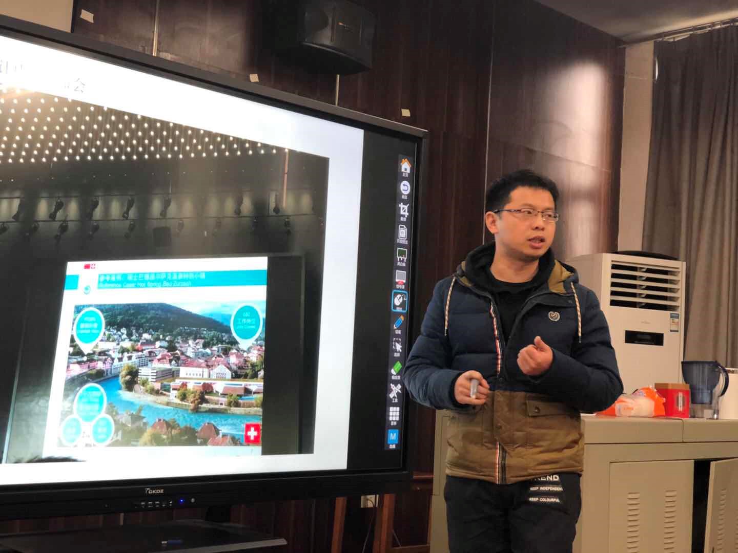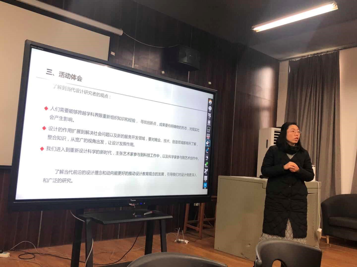 随后,系副主任张锐向全体教职工对2018年度教学、科研、对外交流工作进行了总结,强调本年度教学档案管理存档工作需抓紧落实,并对2019年教学工作提出要求。紧接着,2018年外出交流的七位教师和一位研究生以每人十分钟PPT展示的形式,向在座的全体教职工进行了交流汇报。负责学生工作的辅导员胡凌珺、吴立红做学生工作交流汇报。
