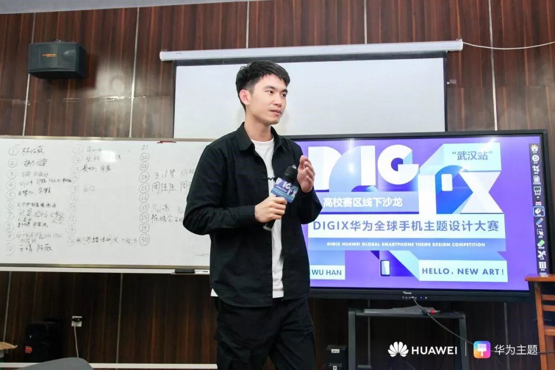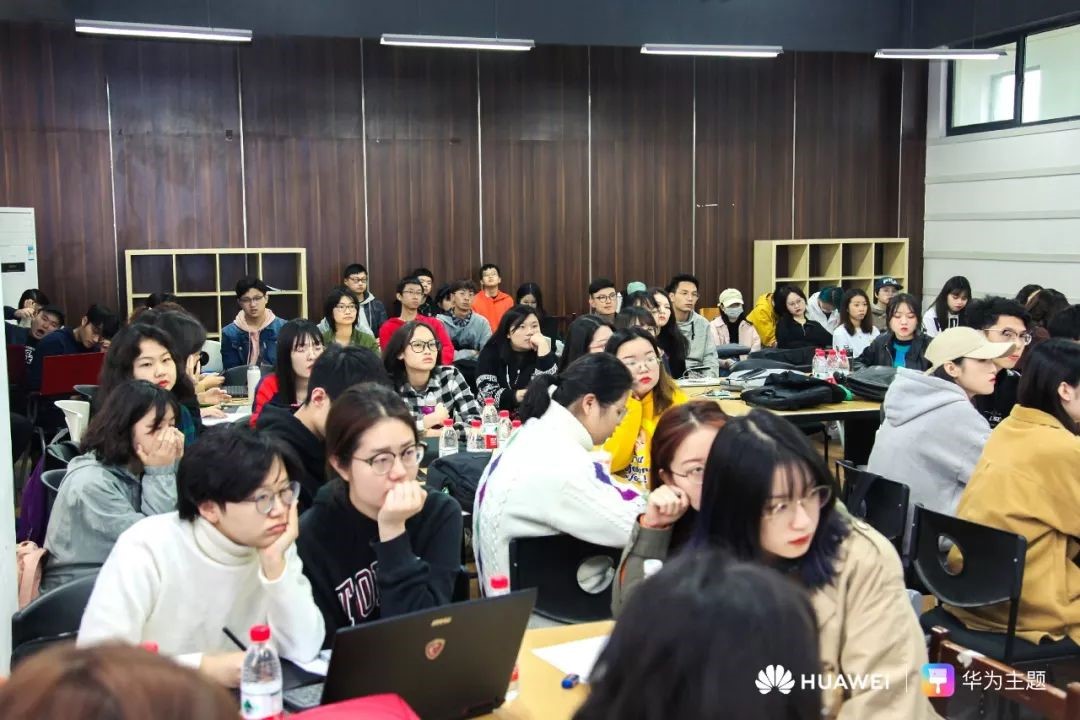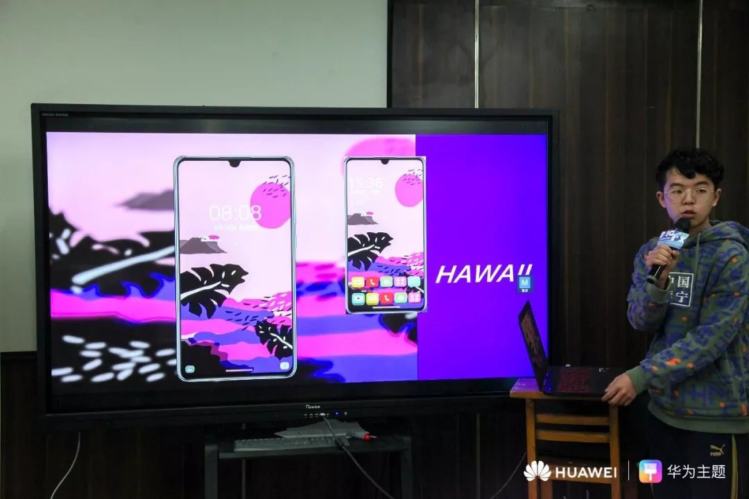 本次活动分为三个板块:依次为华为主题设计总监赖家雪分享了主题创作经验及优秀案例,华为开发经理刘志健讲解了主题设计规范,以及学生作品评选。