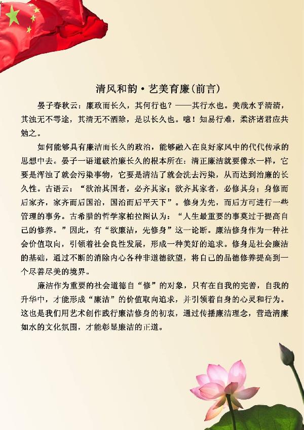 廉洁作为重要的社会道德自“修”的对象,只有在自我的完善,自我的升华中,才能形成“廉洁”的价值取向追求,并引领着自身的心灵和行为。这也是我们用艺术创作践行廉洁修身的初衷,通过传播廉洁理念,营造清廉如水的文化氛围,才能彰显廉洁的正道!