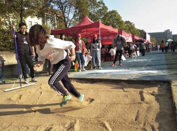 此次运动会项目种类繁多,我系同学积极参与,分别在跑步、实心球、跳远、跳高、接力赛等20个项目上展开角逐。竞赛有男子组、女子组、团体组,采用公正、严谨的比赛规则。