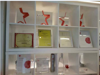 (满满获奖证书和奖杯的荣誉墙)
