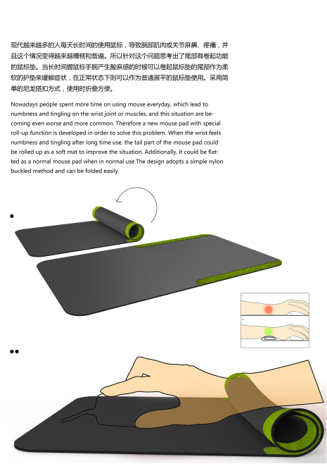 我系2010级校友陈宪设计的可以缓解手腕不适的鼠标垫——O Mouse Pad,在众多的参赛者中脱颖而出,获得2015红点概念设计奖。