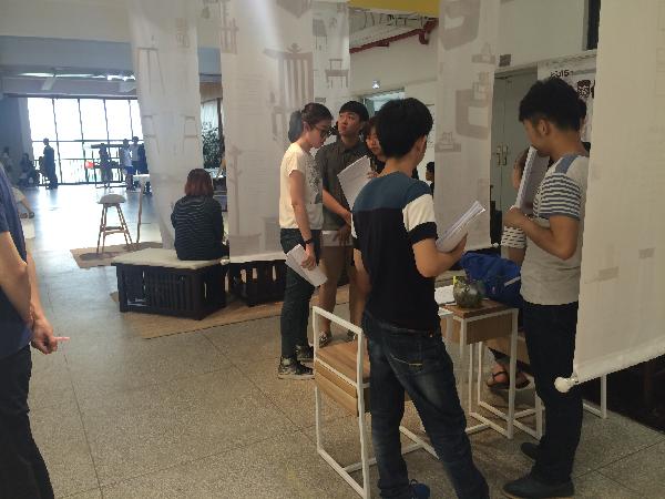 2015年5月23日,星期六上午九点,湖北美术学院工业设计系组织了产品设计专业毕业论文答辩会工作,全体产品设计专业毕业生共107人参加了本次答辩会,持续到下午5点结束。答辩评审组由工业设计系教授谢跃、副主任张锐以及全体产品设计专业教研室专业教师组成,共分成3组同时进行,每组配备了两名答辩记录员,由研究生及本科生组成。
