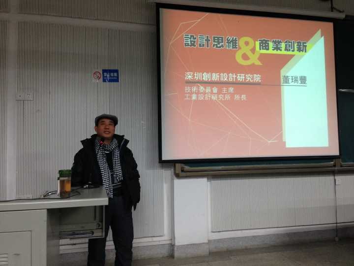 (通讯员:邓为彪)2014年12月10日晚7点,受我系邀请讲学的客座教授、珠海艾狄孚交通工具设计有限公司董事长、无锡董瑞丰汽车设计有限公司董事长、深圳市董瑞丰工业设计有限公司董事长、深圳创新设计研究院技术委员会主席、美国Art Center College of Deisgn客座教授、“红点”设计大赛评委、中国汽车造型设计大赛评委、中国器械工程协会会员董瑞丰教授在湖北美术学院藏龙岛校区A12教学楼106室举办题为《设计思维与商业创新》的学术讲座。本次讲座由工业设计系、科研处联合举办。