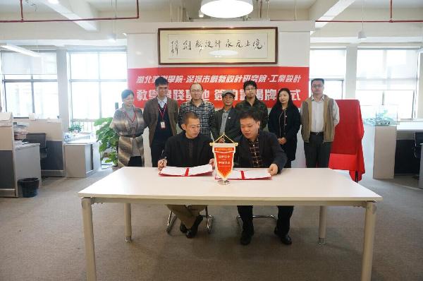 1月6日上午,院党委委员兼教务主任刘茂平带队,工业设计系副主任张锐及教师杨艺、郑娟一同前往深圳,与深圳创新设计研究院签署了合作创建“湖北美术学院大学生就业实习基地”的协议。基地签约暨揭牌仪式在深圳创新设计研究院举行,刘茂平副院长与创新院院长赵宇波共同签署协议并为基地揭牌。