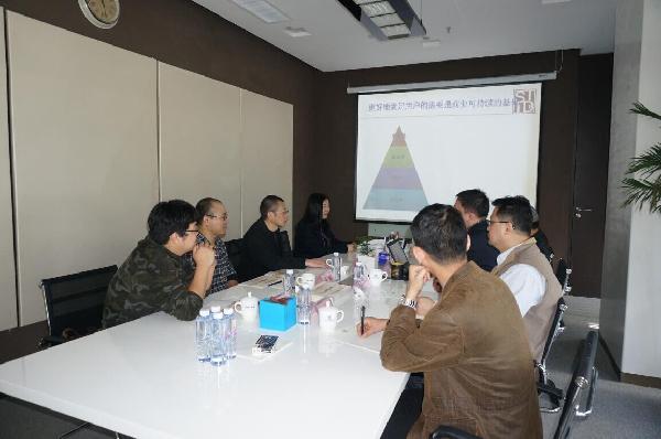 在举行签约仪式前,深圳创新设计研究院综合管理部吴鸿斌总监向大家介绍了该院的发展历程、主要思路及经典设计案例等。赵宇波向大家介绍了深圳创新设计研究院在创新设计方面的整体理念以及在技艺结合方面的产业平台定位。刘茂平对该院的定位及整体理念表示非常认同,希望以教学基地合作为契机,争取更多方面的合作交流,共同推进工业设计专业的发展,力争创建本专业具有学术及社会竞争力的特色学科。张锐对今后的工作设想及具体事项进行了沟通,以保证后期合作的顺利完成。
