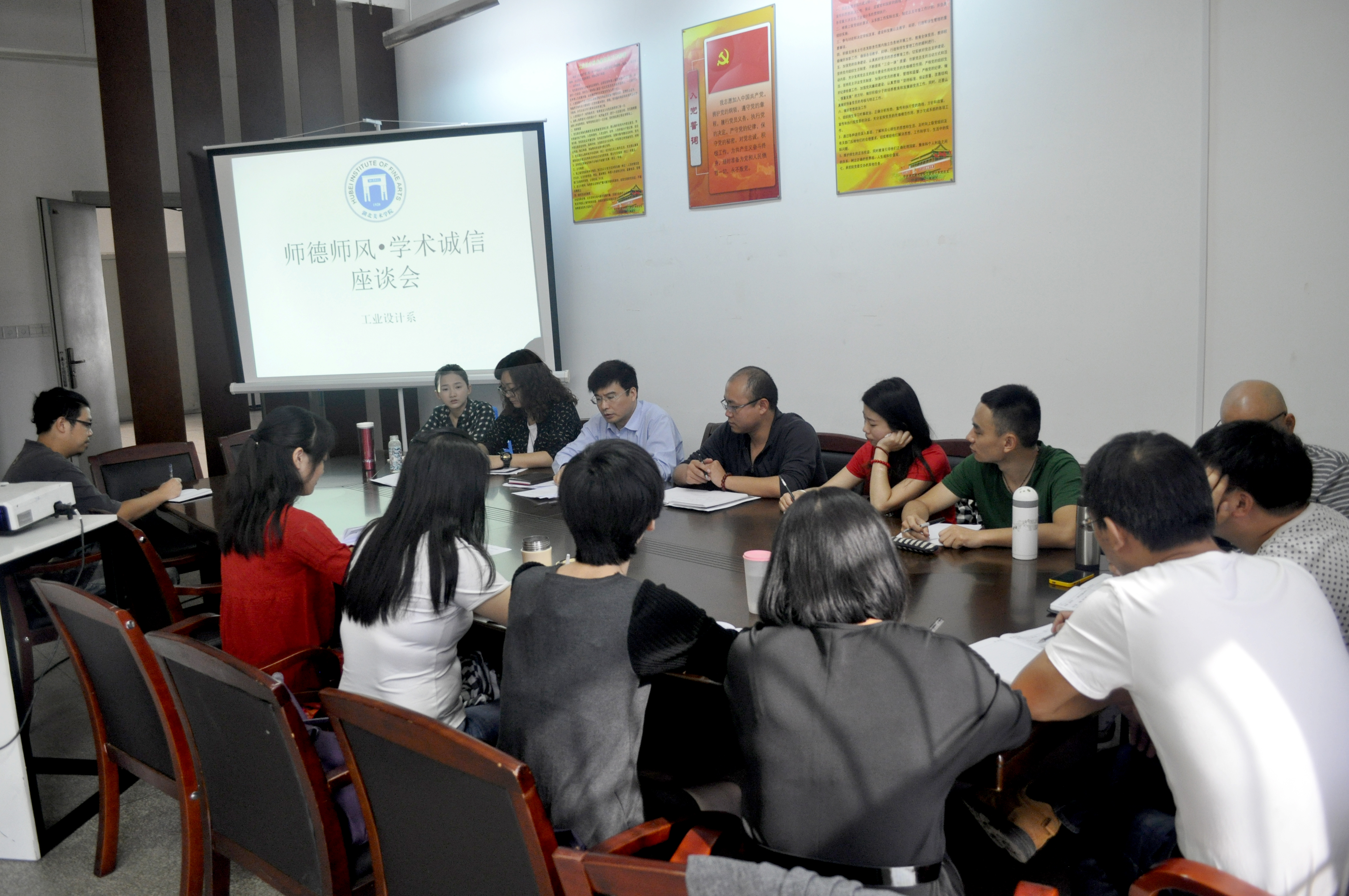 为了加强高校教师队伍建设,提高教书育人水平,按照中央和学校要求,我系于2014年10月24日下午在系教学楼207办公室召开了“师德师风·学术诚信”座谈会,全系教职工参会。