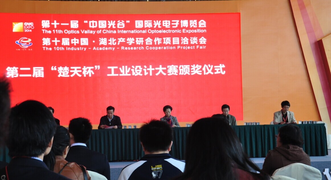 11月6日上午,第二届“楚天杯”工业设计大赛在武汉国际博览中心召开了颁奖仪式,我校获奖人员前往参加了颁奖仪式。简短开幕式后,到场嘉宾共同参加了同时举办的光博会与产学研合作项目洽谈会。同时,此次交流,也使获奖人员参观并学习了其他作品,进一步促进我校工业设计的进步与发展。