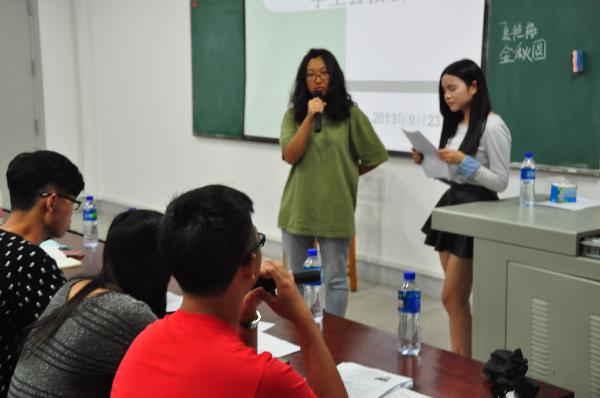 (通讯员:龙炳余)2013年9月23日,为了强大学生会的力量,也为了能更好的为老师同学分忧解难,我系学生会于A教学楼210多媒体教室展开了面对2013级新生的招新,到场的人员有辅导员李军老师以及全体学生会成员,会议以面试的形式进行,参加面试的同学需要先向大家进行自我介绍,然后与学生会评委的进行一些问答,不少前来竞选的同学还带来了精彩的才艺表演。