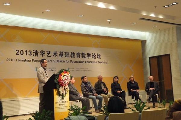 参加“2013清华艺术基础教育教学论坛”的演讲嘉宾有,美国卡麦基梅陇大学的教授,英国中央圣马丁艺术设计学院基础部课程主管提摩西•米拉,国立台湾科技大学林廷宜,韩国科技大学的白桑明教授以及清华大学柳冠中教授、邱松教授,中央美术学院的王兵教授等。来自全国各地的二十多所高校教师代表汇聚清华,对艺术基础教育展开了激烈的探讨。论坛中,各位专家就如何培养学生的创新思维能力、进行基础课程内容的跨学科建设、尊重不同学校艺术基础课程所呈现的差异性与多样性等方面提出了自己的学术见解。