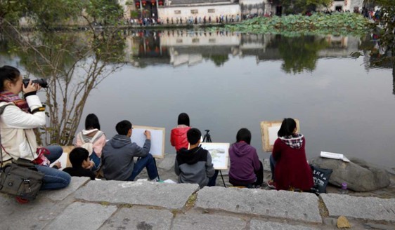 (通讯员:罗丽弦)10月,工业设计系教师一行带领130余名学生前往皖南宏村写生,宏村是个粉墙黛瓦的世外桃源,在这里,同学们深刻感受到有着几百年文化氛围的“画里乡村”。几乎每天,老师都将组织学生进行对作业的讲评,并提点他们寻求适合自己的绘画手法、以及改进的方向。同学们的画作也栩栩如生,风格各异。斑驳的砖墙,弯曲的小巷,潺潺的溪水,宏村和周边的西递和南屏,每个地方的风景都可谓独树一帜,学生们乐此不疲的融入这个写生的环境中去,同学们在这里不仅学习了绘画也收获了快乐,体会对艺术的享受。