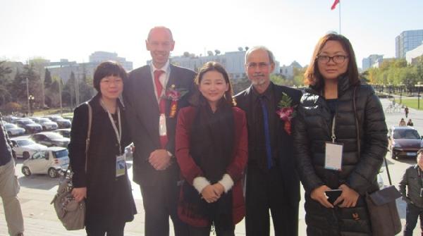 我系教师与香港理工大学设计学院院长方启思教授、美国卡耐基梅隆大学设计学院前院长丹.博雅斯基教授合影留念