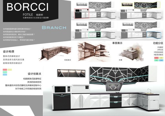 2012年3月,我系接到由宁波方太厨具有限公司和中国美术学院工业设计研究院发出的“柏厨杯”包豪斯厨房文化创新设计大赛的邀请,大赛只在全国邀请四所高校参加。分别是中国美术学院、南京艺术学院、山东工艺美术学院以及我校。接到邀请后,系领导高度重视。系副主任刘向东教授马上召开工作会议,并总体负责,最终形成由年轻教师加优秀学生组成三个设计小组参加比赛。在系领导班子关心下,各小组经过6个月的努力,取得丰硕收获!我系学生原丽花、丁立、辛素文所设计的参赛作品“厨易”在李和森、王莉莉老师的辛勤指导下获得金奖!由学生张立、张江南、吴宇屏所设计的参赛作品“Branch”在杨艺、王康老师的指导下获得了铜奖!