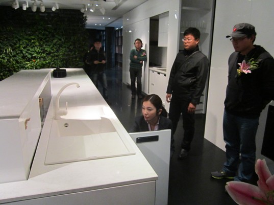 在典礼开始前的见面会上,我系代表教师与方太厨具有限公司运营副总裁王海兵、方太公司柏厨事业部的朱让荣总经理、中国美术学院的赵阳教授、南京艺术学院工业设计学院李亦文院长以及山东工艺美院工业设计学院彭冬梅院长及相关院校的青年教师们就目前国内外高端厨房市场进行分析,对于国内企业在设计、生产、销售中遇到的问题进行了讨论,并提出建设性的意见。中国美术学院的赵阳教授阐明了举办本次设计大赛对于中国厨房厨电市场的影响,以及设计对于一个企业、一个地方以及一个国家的重要性。
