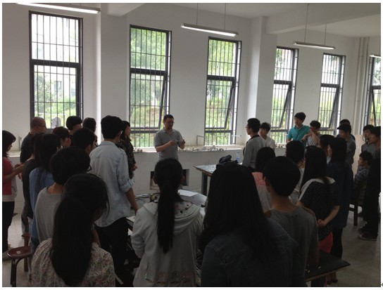 邱老师认为,造型设计基础的主要任务是通过探讨不会因潮流或时尚而改变的共性事物,从而迅速有效地提高创造力、美的感受力等综合素质。他以睡莲的造型元素为例,引导学生思考睡莲的造型原理,生物特性,以及其由此关联的功能,为学生提供了造型设计时获取灵感的通道,解决了大多数人空有一闪即逝的灵感却无法捕捉成型的问题。课上,邱老师还为我们分析了造型的思维方法的问题,让学生也参与讨论,与学生亲切互动。