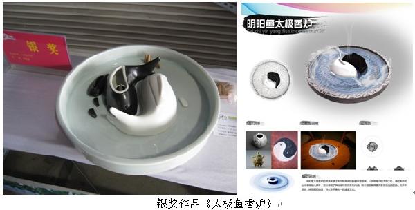 2013年5月底,我系接到由焦作市旅游局和天津工业大学发出的“焦作旅游商品全国创新设计大赛”的邀请。大赛邀请全国高校和设计公司及个人参加。接到邀请后,系部积极组织优秀学生参加比赛。经过2个多月的努力以及7月份的初评到最后8月份的终评,取得丰硕收获!我系老师指导的10级学生陈少伟、李明敏两位同学所设计的参赛作品“太极鱼香炉”、 “无量度人”分获银奖、铜奖!应焦作旅游局的邀请,我系获奖学生代表陈少伟参加了由焦作旅游局举办的“焦作旅游商品全国创新设计大赛”创新设计颁奖典礼。参加这样的赛事并获得大奖,扩大了我校工业设计系在业界的影响,同时也加强了我校与兄弟院校之间的交流、学校与企业的合作,为学校教学与社会以及企业更好地接轨提供又一途径,真正用设计知识服务社会,体现出工业设计教学的价值。