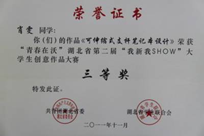 11月3日下午,由团省委、省学联、中国联通湖北省分公司主办的“青春在沃”湖北省第二届“我新我SHOW”大学生创意作品大赛决赛在中国地质大学(武汉)大学生活动中心举行。全省近60所高校的参赛队伍携带300余件参赛作品进入了决赛,由我院团委和工业设计系共同组织送选的15件作品获得了一个一等奖、两个二等奖、三个三等奖、两个优秀奖的好成绩,我校也被评为本次活动优秀组织单位。