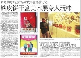 我校“80后”教师贺诚展出的作品《集物集忆》——11款古旧的铁皮饼干盒不仅吸引了众多观展者的目光,更成为媒体关注焦点。今日,武汉晚报以“美院80后教师收藏饼干盒”为题,长江日报以“最简单的工业产品承载丰富情感记忆 铁皮饼干盒美术展令人玩味”为题,聚焦贺诚教师作品。“物质缺乏的那些岁月……最简单的工业产品却承载丰富的情感记忆。这些国货记录了时代的变迁,尽管都已生锈、破损,但美好依然在……”媒体如是评价。