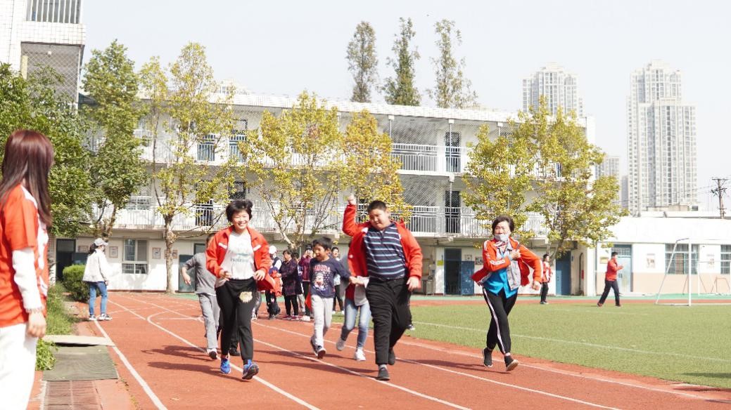 赛道上,孩子们都努力向前奔跑,志愿者的姐姐们在一旁给他们加油打劲儿、陪他们往前冲,让他们觉得生活并不是独自面对的,而是我们的一同陪伴!