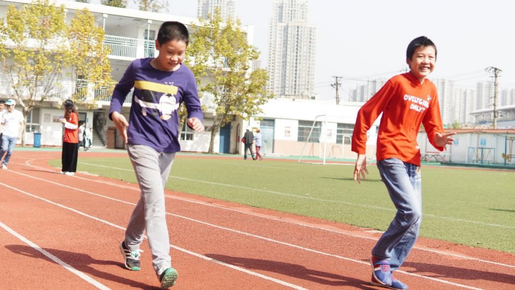 孩子们兴奋地在赛场上奔跑、跳跃