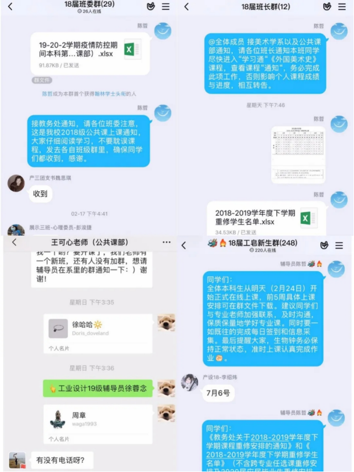 工业设计系根据国家教育部对高等学校“停课不停教、停课不停学”的要求,并按照学校统一教学安排开展线上教学。在线教学准备期间,系部办公室负责及时传达与汇报各项通知要求;组织各教研室任课教师制定在线教学方案;统一教师、学生与行政管理人员之间的信息互通平台,提高工作效率;与教学职能部门、公共课教学部门沟通协调,确保每名学生能按既定教学计划顺利开课;定期与任课教师、辅导员、班级学生干部就在线教学准备情况进行工作提醒与反馈,做好各项教学管理服务。