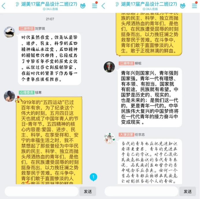 3月22日,工业设计系于疫情期间在网络上组织“学总书记回信,话青春担当”主题团日活动,集中学习习近平总书记给北京大学援鄂医疗队全体“90”后党员回信精神。发起“祖国我想对你说”、“疫情期间最令我感动的事”等讨论话题,营造出了高涨的爱国氛围,激起同学们的家国情怀。