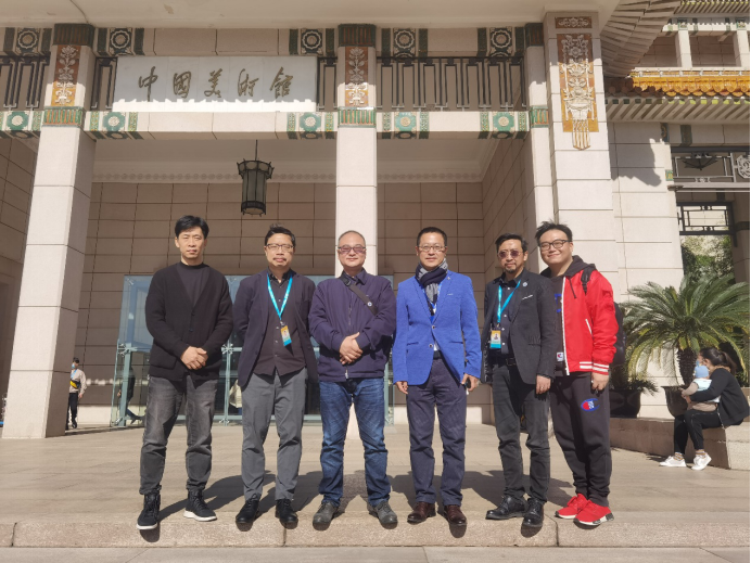 清华大学美术学院副院长赵超教授、湖北美术学院院办主任张炼、油画系系主任徐文涛、版画系系主任曹丹与工业设计系教师在中国美术馆前合影留念
