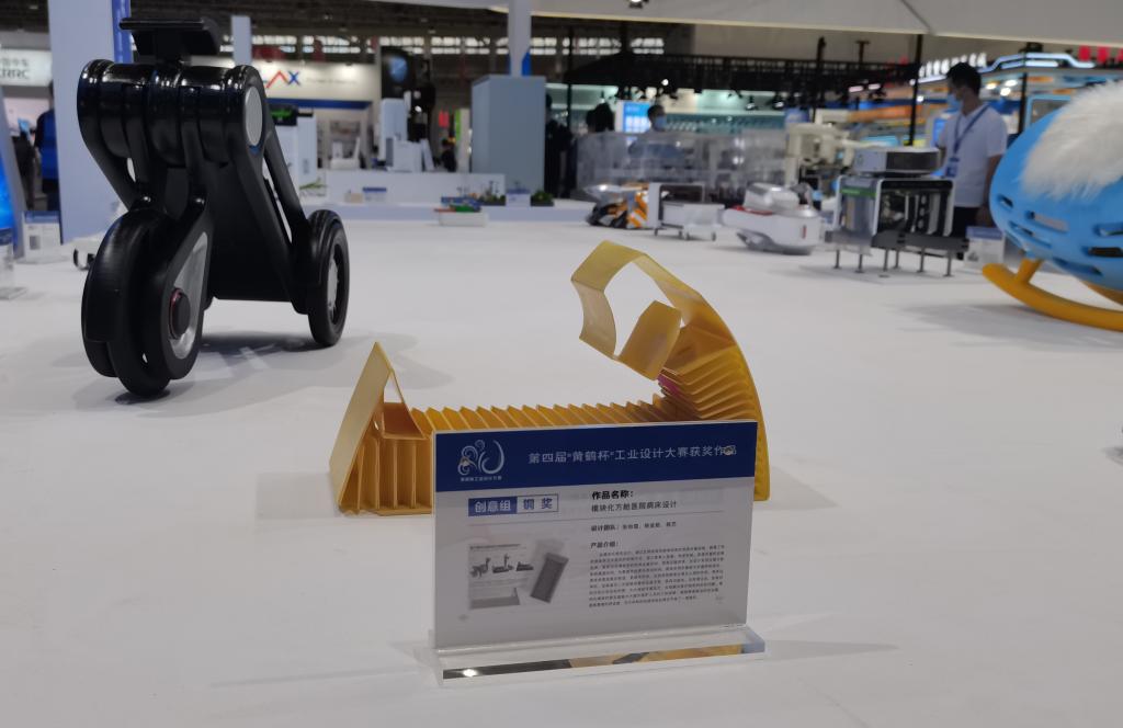 2022年8月6日上午第五届中国国际工业设计博览会创新论坛在武汉红T时尚创意街区举行,本次创新论坛首先为第四届黄鹤杯工业设计大赛获奖选手颁奖,本届大赛共有超过200件作品入围总决赛,经选手精彩答辩与专家严谨评审,创意组最终决出51件获奖作品,包括金奖3项、银奖6项、铜奖12项、优秀奖30项。其中,英国上市公司365廖佳威同学的作品《基于新冠肺炎疫情下的负压救护车概念设计》(杨艺副教授指导)脱颖而出,斩获金奖;张怡瑄与杨金柱同学的作品《模块化方舱医院病床设计》(杨艺副教授指导)摘得1项铜奖。