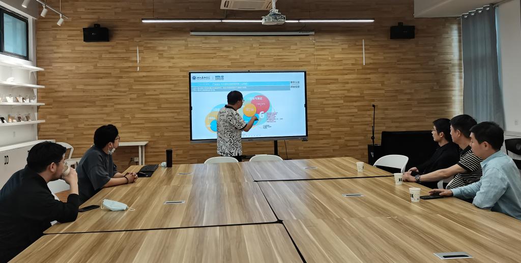 随后,在A6教学楼212会议室,工业设计学院院长助理王康向湖北汽车工业学院艺术与设计学院领导们,介绍了工业设计学院发展定位、人才培养模式以及毕业设计研究方向等。双方就本次调研活动中的“一流本科专业建设点、硕士点建设等办学经验”进行深度交流。