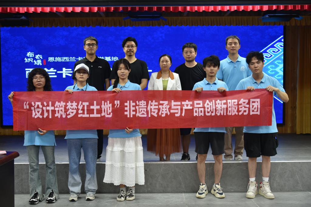 为引导学生在非遗传承和美丽乡村建设中切实发挥专业优势和创新能力,促进理论与实践更好地结合,6月下旬,在副院长杨艺、专业教师陈镇、辅导员李洋的带领下,“设计筑梦红土地”非遗传承与产品创新服务团来到恩施布衣织绣有限公司开展暑期社会实践。