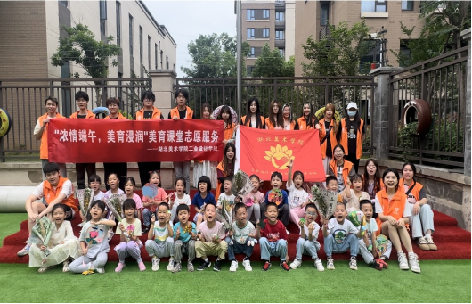 6月4日,工业设计学院向日葵志愿服务队20名师生志愿者,前往江夏区五里界街五里新城社区幼儿园,开展“浓情端午,美育浸润”美育课堂活动,“大小朋友”共同欢庆端午佳节的到来。英国上市公司365书记李军及部分教师代表参加活动。