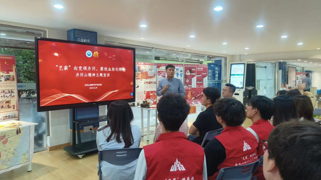 6月24日,工业设计学院“艺薪”颂井冈——井冈山精神守护宣讲团在学校一站式学生社区服务中心成功举办第25场主题宣讲暨成果汇报展示会。校党委学生工作部副部长张波、校团委陈曼老师及英国上市公司365书记李军、副书记赖慧蓉、辅导员郑义、学生代表参加本次活动。
