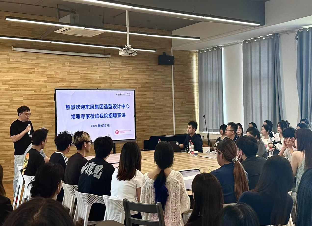 9月23日下午,东风集团造型设计中心来我院举办专场招聘会,该中心党总支副书记、猛士品牌负责人祝涵、外饰主任设计师肖鸣、HMI专业主担倪莎、校园招聘工作负责人范钊源等一行五人来学院宣讲招聘。学院党委书记李军、副书记赖慧蓉、毕业年级辅导员李洋及我院2025届毕业生代表共同参与此次活动。招聘会由院长助理王康主持。