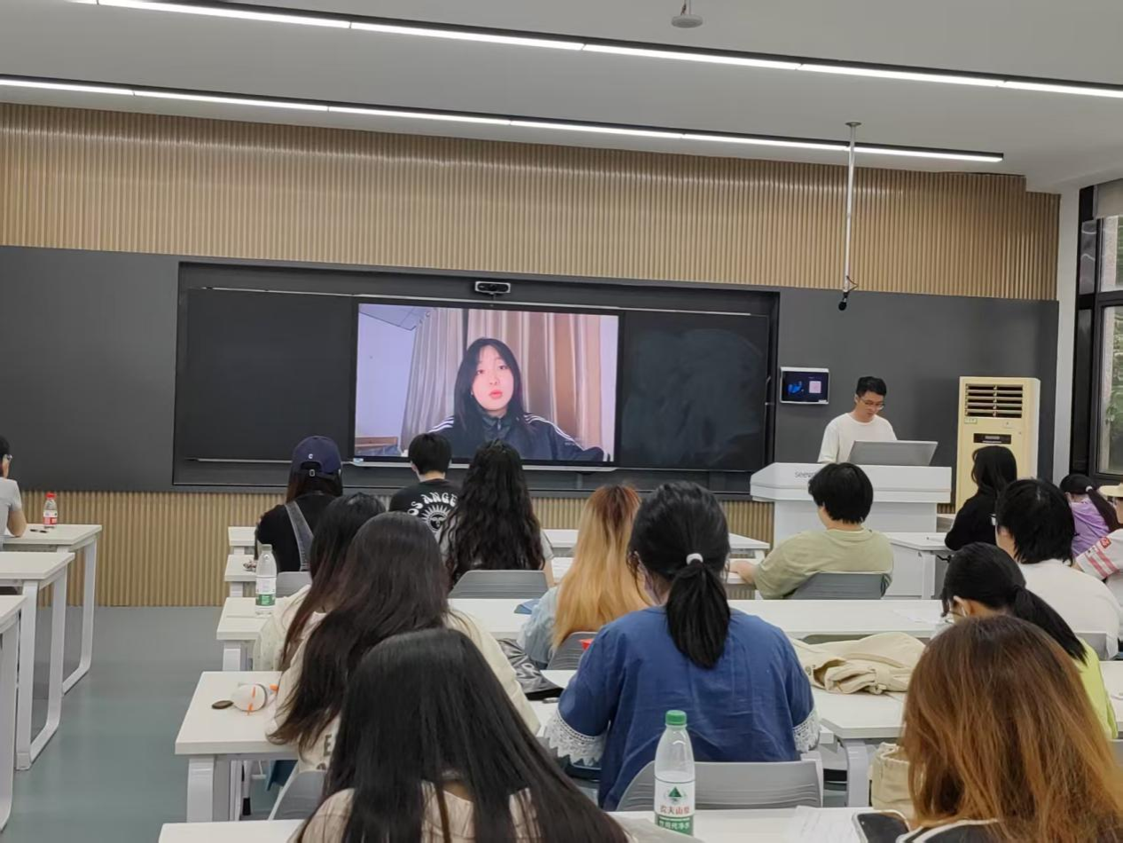 活动邀请学院2024届毕业生、西部计划志愿者孙雅欣、陈睿思进行视频连线,分享扎根西部的感悟。在志愿服务期间,孙雅欣精心设计教学环节,并尝试将自身美术特长融入语文教学中,使每一堂课都成为审美与表达的双重探索,唤醒学生的感知力,激发学生的创造力。陈睿思积极担任百姓广场舞大赛、团百姓春晚、团拜会主持人,用声音传递温暖,认真做好财务审核、预算分析工作,理解到“劳动创造美”的意义。两位志愿者详细分享参加西部计划的初心动机、前期准备、报名流程、工作内容、生活保障、工作心得、青春寄语等内容,引导青年学子奔赴西部建功立业。