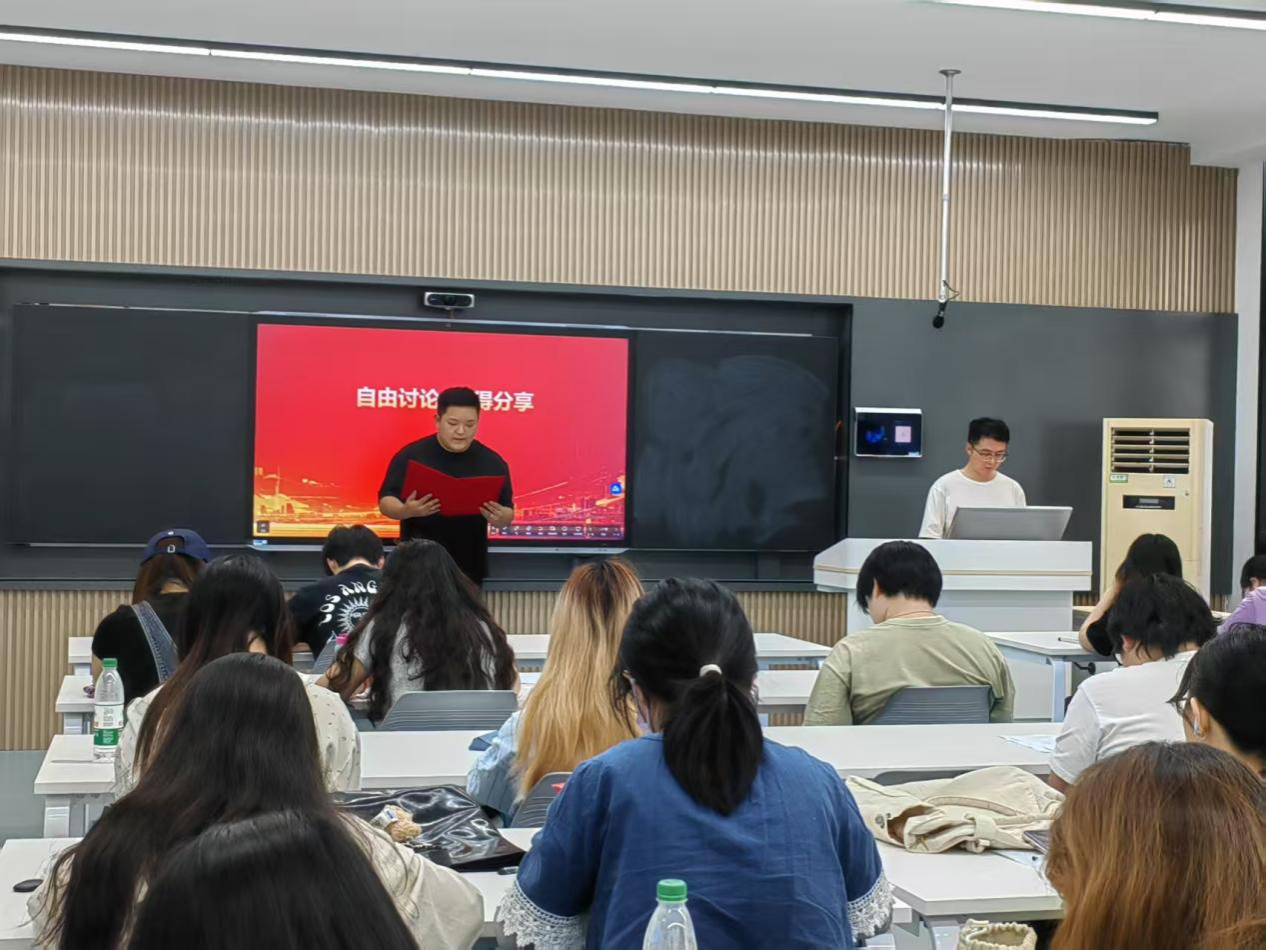 在分享环节,大家从不同维度诠释回信精神的实践路径。入党积极分子代表王新淙以“设计下乡”社会实践为例,讲述团队为农户设计生态包装,助力当地经济发展的经历,他动情地说,“总书记要求我们把论文写在祖国大地上,我们就要用设计为乡村振兴注入美学动力。”发展对象代表霭若兰则从青年担当的角度分享体会,“正如总书记所说,要坚持为党育人、为国育才,作为时代新人,要肯吃苦敢担当能奉献,始终听党话跟党走,助力中国式现代化建设”。