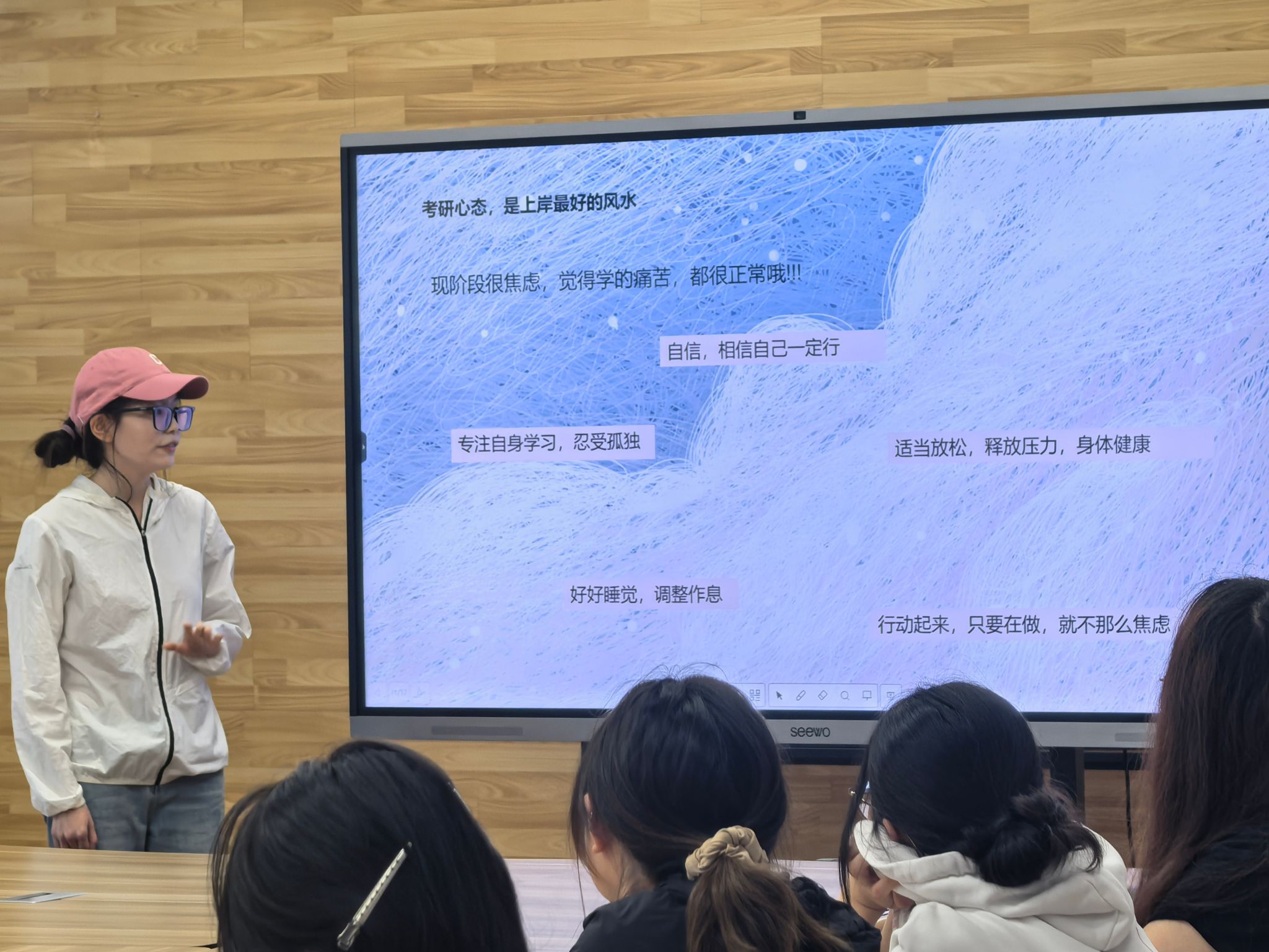 本次考研经验分享会,向同学们普及考研相关知识及备考实用方法,增强同学们考研的信心和决心,相信在榜样力量的感召下,每位备考学子都能书写属于自己的上岸华章。