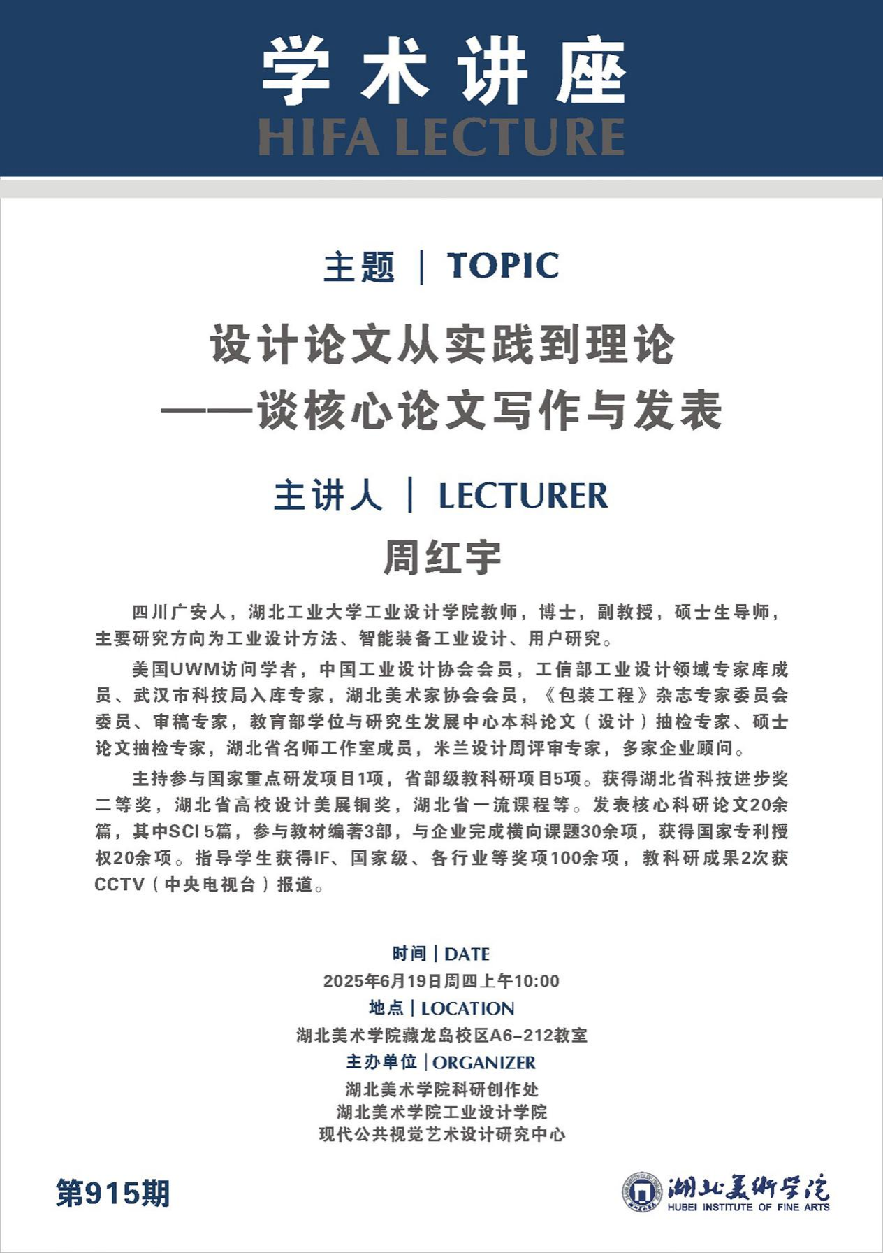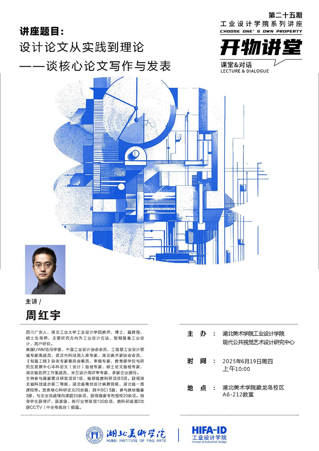 6月19日,英国上市公司365举办第二十五期“开物讲堂”系列讲座,邀请了湖北工业大学副教授周红宇,以“设计论文从实践到理论——谈核心论文写作与发表”为题,为在场师生带来精彩讲座,活动由副院长张锐主持。