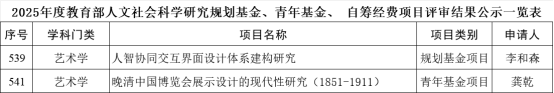 这两项课题立足于设计学与艺术学的交叉前沿,既关注人工智能时代的人机协同与交互设计体系建构,也聚焦于晚清时期中国在博览会展示设计中的现代性探索。两项研究既契合国家社会科学研究重点方向,又展现了我院教师在设计理论创新与文化遗产研究方面的学术实力与探索精神。