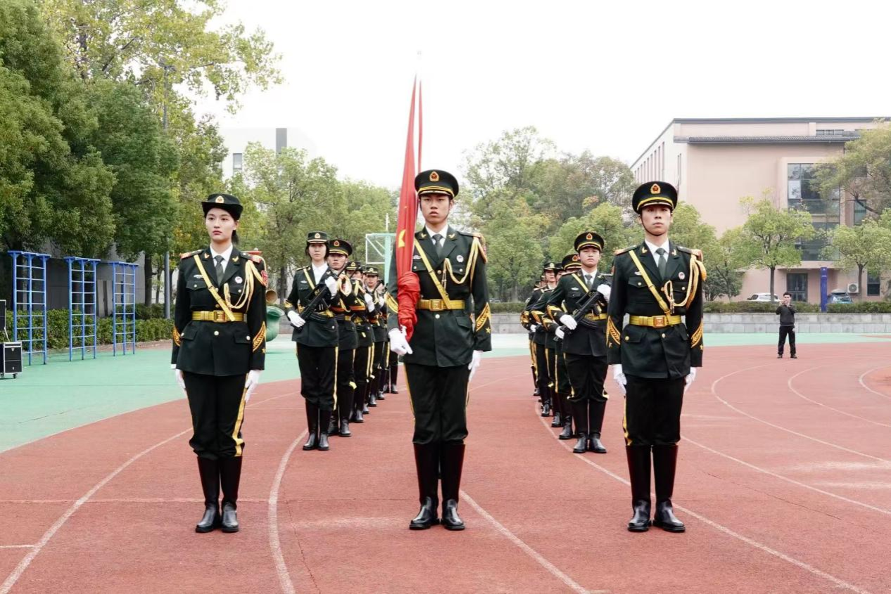 晨光微熹,升旗仪式正式开始。英姿飒爽的国旗护卫队队员迈着铿锵有力、整齐划一的正步,护卫着鲜艳的五星红旗,庄严地走向升旗台,每一步都踏出了新时代青年的坚毅与担当。随着激昂的《义勇军进行曲》奏响,全体师生高唱国歌,向国旗肃立凝视。
