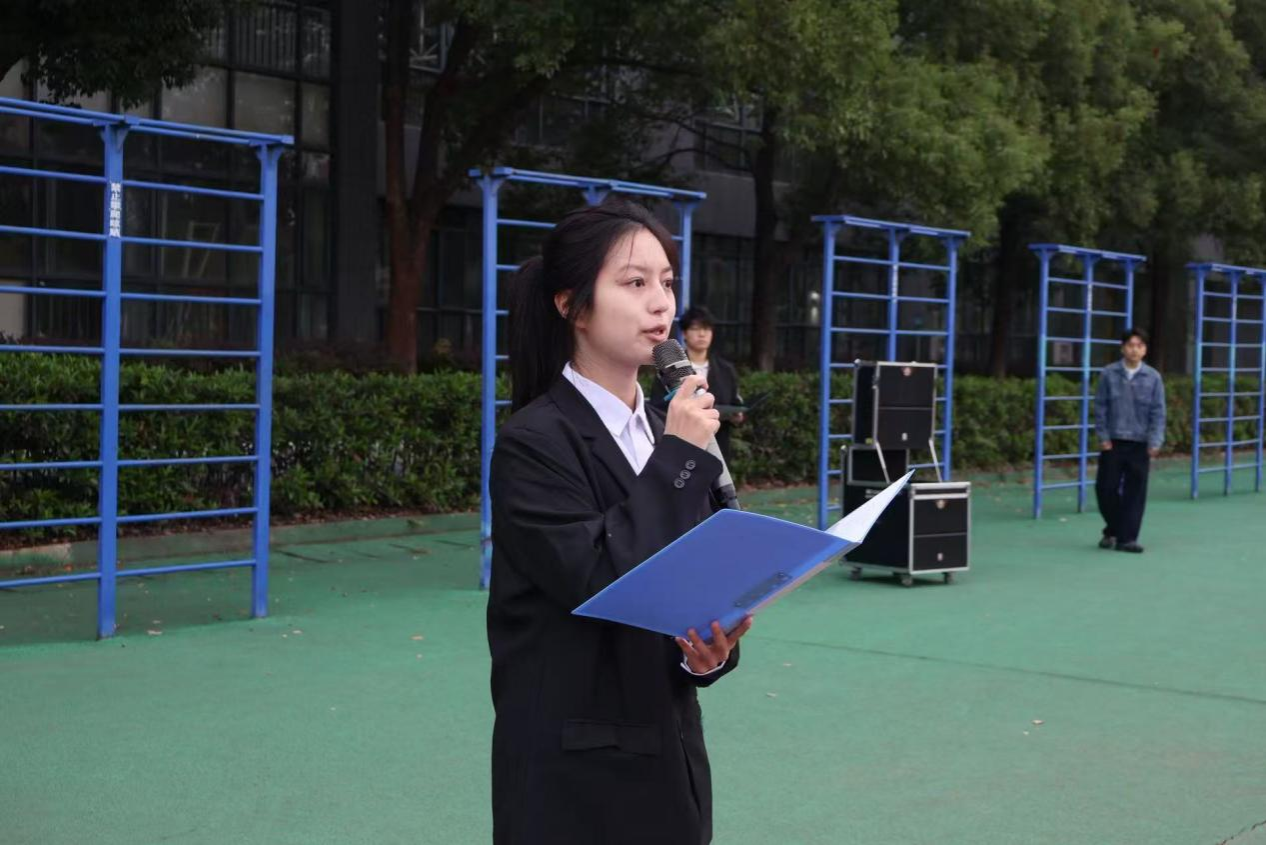 2025级学生代表张纳纳在国旗下发言。她从“认清小我”“超越小我”“实现大我”三个方面,以柳冠中、王澍、袁隆平为典型人物,深入探讨个人价值在与时代同频、家国共振中得以实现的课题,呼吁大家积极向外链接,以小我成就大我。