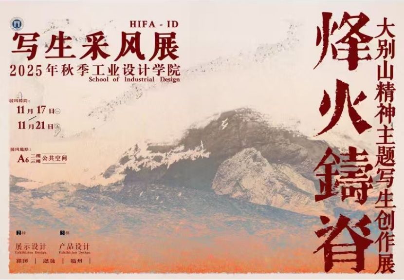 “烽火铸脊”寓意大别山革命精神如烽火般淬炼民族脊梁,激励后人砥砺前行。展览以艺术为媒介,通过学生的视角重新诠释大别山精神中的坚韧、奋斗与奉献。此次展览以“烽火铸脊”为题,兼具教育性与艺术性双重目标。将写生实践与红色教育深度融合,打破思政教育与专业教学的壁垒,让学生在亲近自然与触摸历史的过程中,深刻感悟大别山精神的时代价值,树立“设计为人民、设计传精神”的理念,擦亮工业设计学院“铸魂开物”品牌。
