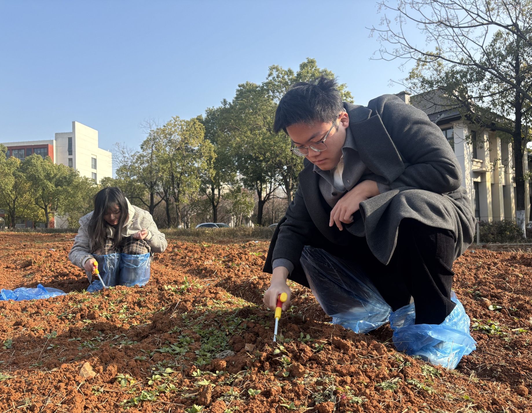 1月7日下午,工业设计学院劳动实践田地内,一堂生动的劳动实践课正在进行。在学院辅导员的带领下,学生们走入田间,亲手采收本学期初播种、培育的第一批樱桃萝卜。