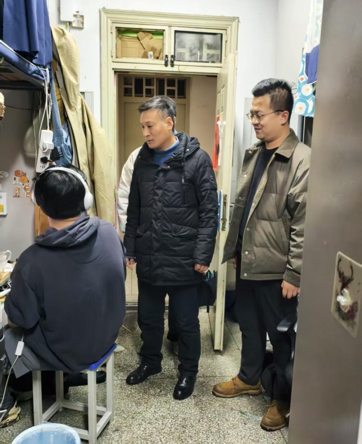 针对宿舍环境与安全管理,李军书记进行现场查看与指导。他强调,宿舍是学生学习、生活的重要场所,要共同维护好安全、文明、和谐的宿舍环境,加强自我管理,营造积极向上的宿舍文化氛围。同学们对学院领导的深切关怀表示衷心感谢,纷纷表示将牢记嘱托,不负期望,以饱满的热情开启新学期新征程。