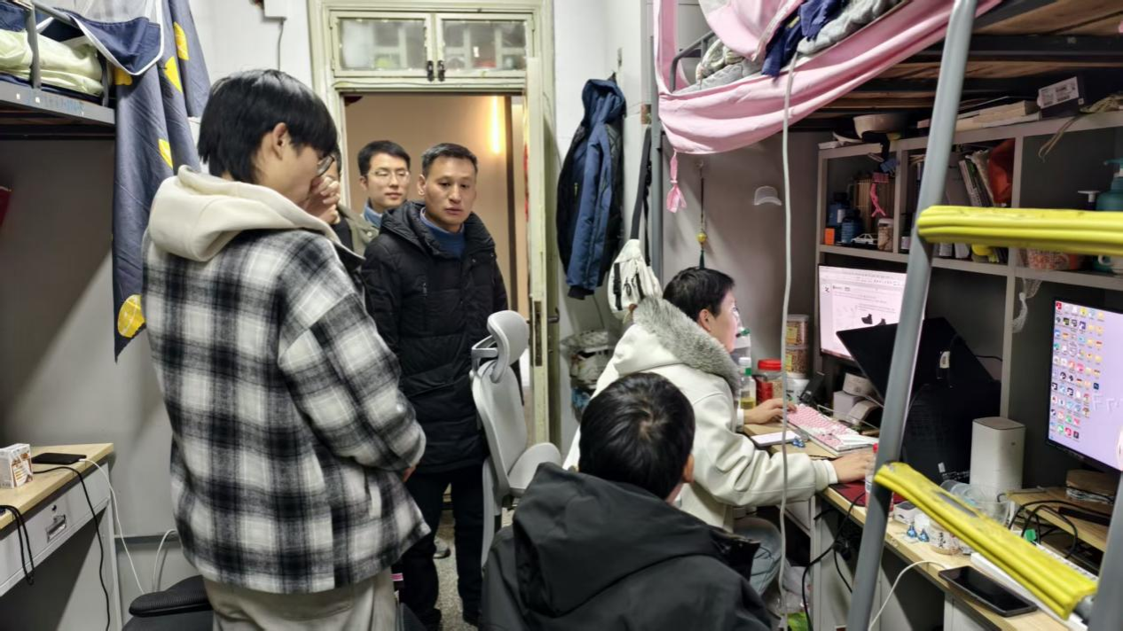 走访期间,李军书记与同学们进行了亲切交流,细致询问同学们的寒假生活、返校适应情况及新学期的学习规划,并代表学院向同学们致以新春的问候。他叮嘱同学们要尽快调整状态,以崭新的精神风貌投入到新学期的学习生活中,夯实专业基础,练就过硬本领。李书记进一步指出,在新的一年里,同学们要明确目标,科学规划,充分利用学院提供的优质资源与平台,努力将理论知识转化为创新实践能力,力争在学业与综合素质上取得新的进步。
