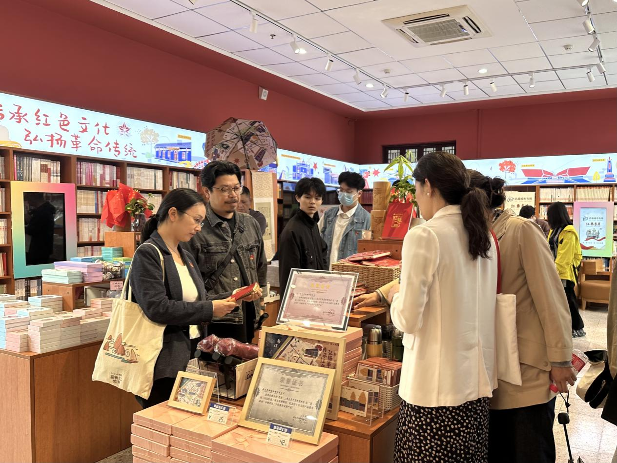 在调研园区内的红色主题文创商店——红巷书屋后,学院师生与武汉革命博物馆部门负责同志进行座谈,双方着重就红色文创大赛筹办、博物馆特色文创产品打造、业务合作等方面进行深入交流。