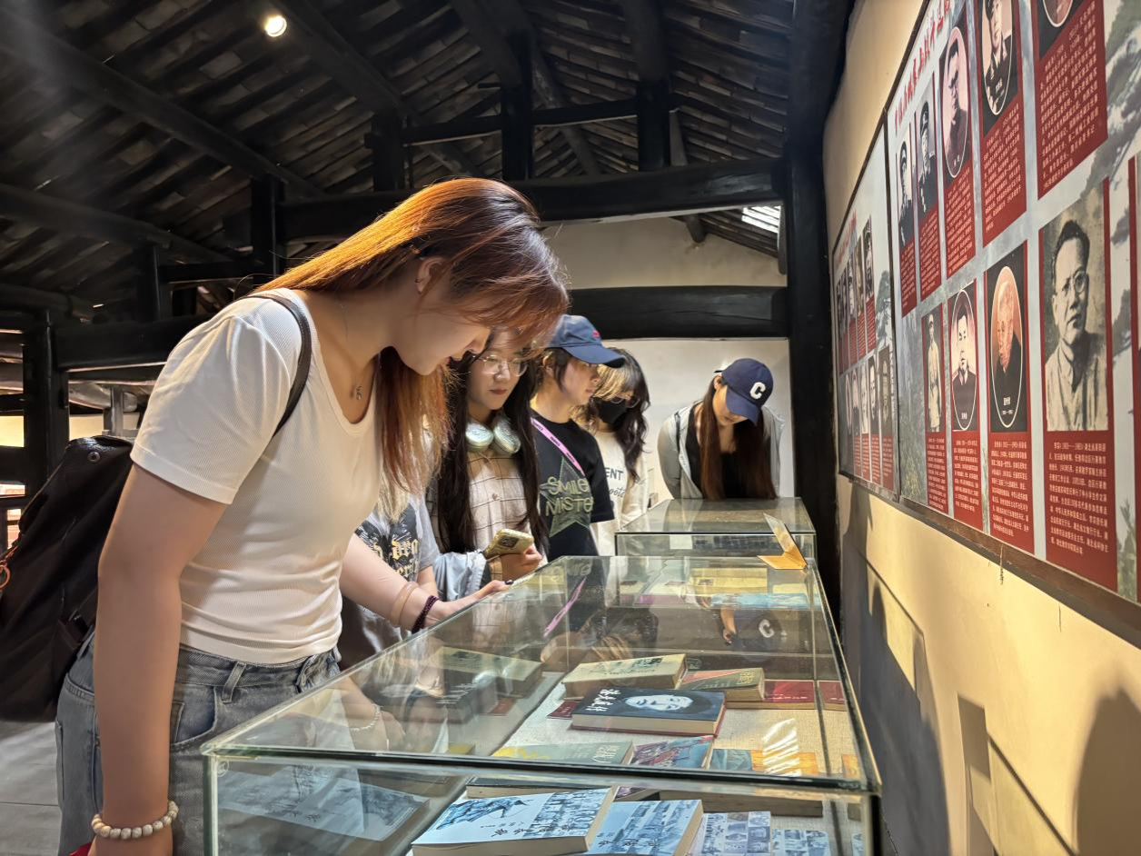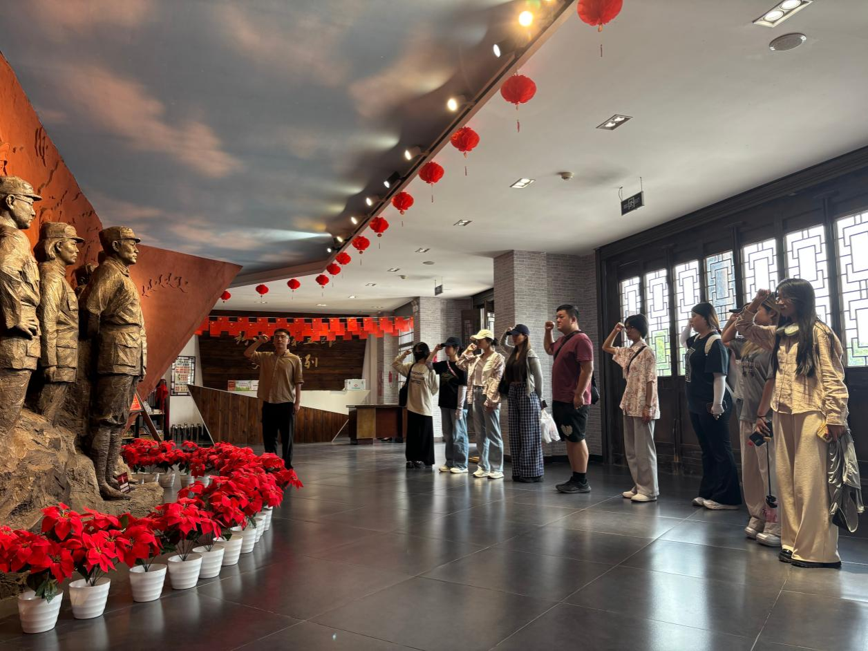 调研实践团队的师生们在新四军第五师历史陈列馆内,驻足历史文物、仿真场景及群英浮雕,通过“木兰烽火”“怒潮喷涌”“挺进鄂豫”“中原抗战”“战略包围”“辉煌胜利”等专题展设,重温新四军第五师独立支撑武汉外围敌后抗战的壮烈历程。在李先念、陈少敏旧居,师生深切缅怀老一辈革命先烈为国家富强、民族解放、人民幸福所作出的辉煌成就,厚植爱国主义情怀,明确时代使命担当。随后参观现存新四军第五师司政大礼堂、枪械所、印刷厂等革命遗址,重温烽火岁月,感受昔日革命干部与人民群众的鱼水情谊。