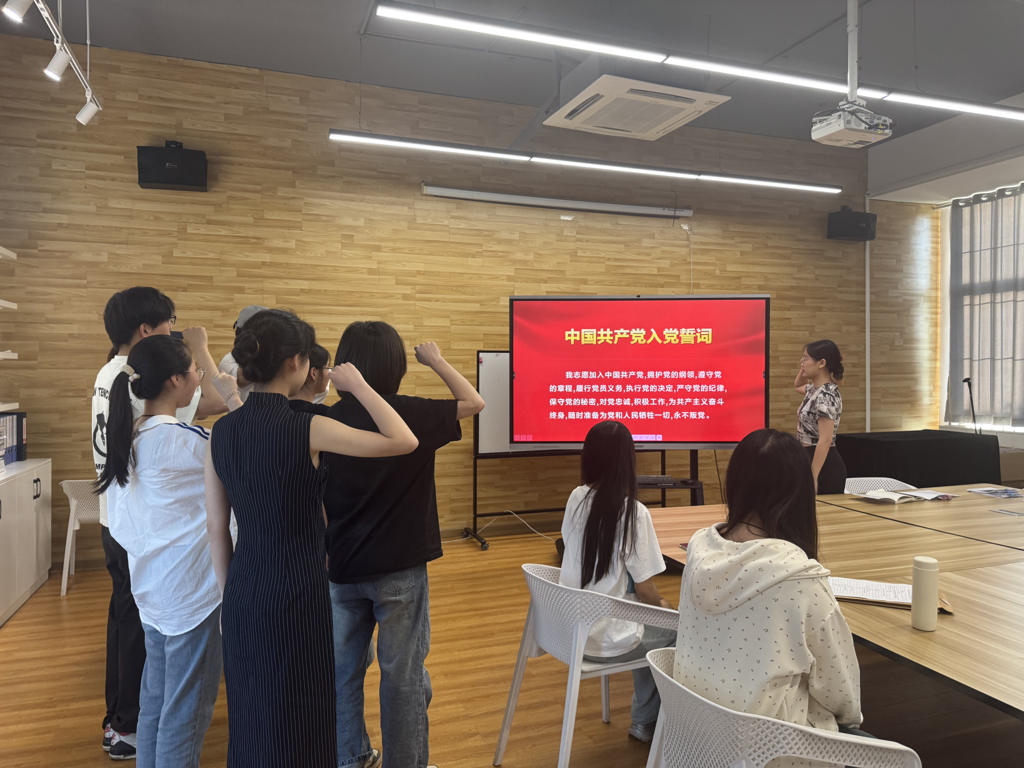 会议对预备期满的9位预备党员转正情况逐一进行讨论表决。9位同志依次汇报自己在预备期间的表现情况,入党介绍人总结其日常表现并就能否按期转正表明意见、支委会汇报教育考察情况、与会党员发表意见、正式党员进行无记名投票表决。会议决定曾俊程、吴颖、张纯乐、方柳琴、王梦阳、殷靖炆、向倩仪、陈雨果、梁绍美按期转为中共正式党员。上述同志进行表态发言并重温入党誓词。
